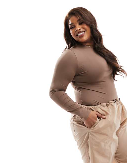 ASOS DESIGN Curve All Day smoothing body with long sleeves in taupe