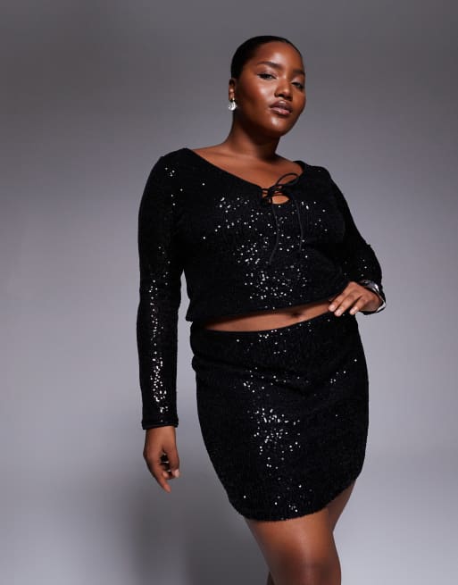 ASOS DESIGN Curve allover sequin mini skirt in black