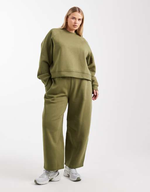 ASOS DESIGN Curve barrel leg brushback trackies in khaki
