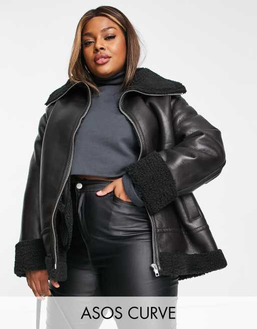 ASOS DESIGN Curve borg aviator jacket in dark brown