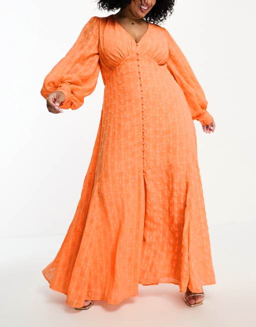 ASOS DESIGN Curve button through maxi dress in orange