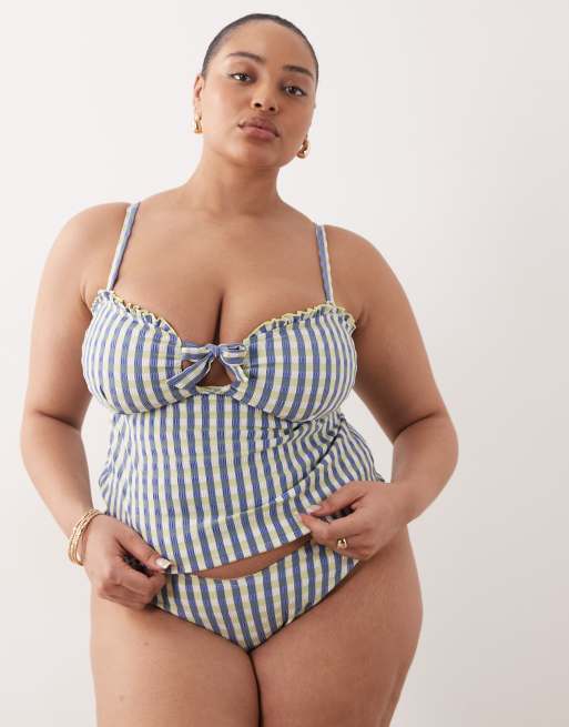 ASOS DESIGN Curve Cheri high leg bikini bottom in lime check