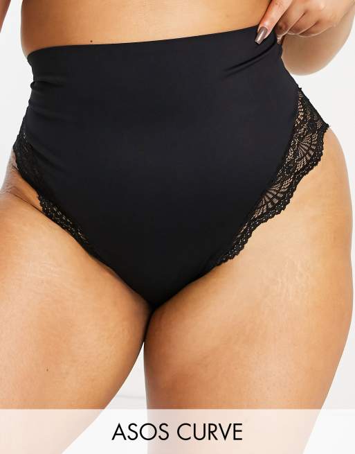 ASOS DESIGN Curve contouring medium control high-waist knickers with lace in black