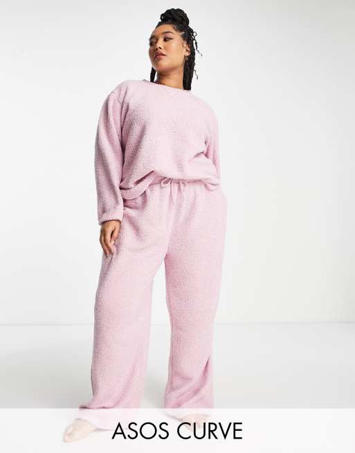 ASOS DESIGN Curve cosy lounge borg sweat & pants set in pink