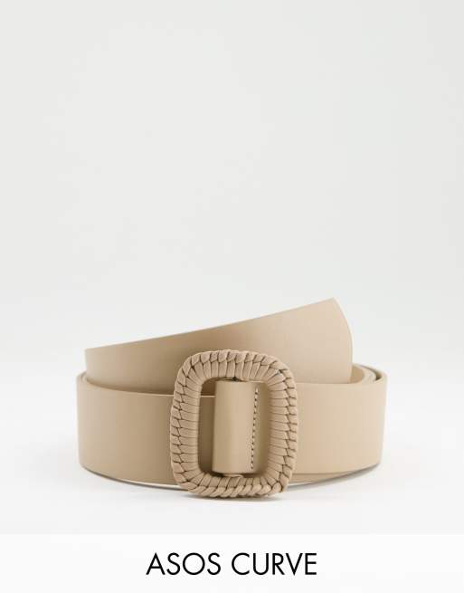 ASOS DESIGN Curve covered buckle waist and hip belt in beige