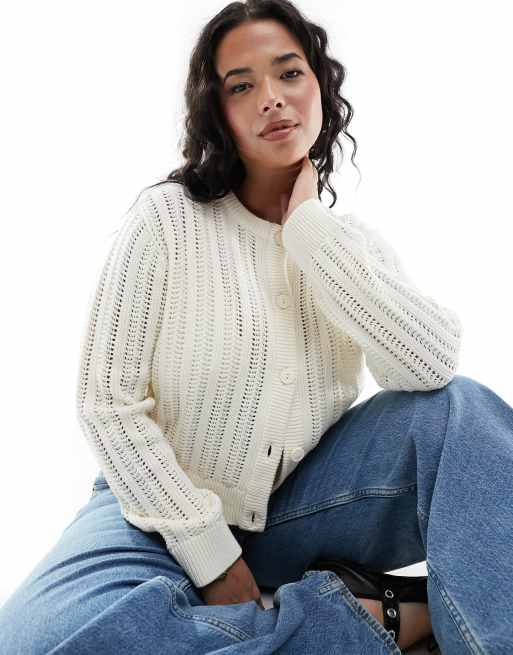 ASOS DESIGN Curve cropped crew neck cardigan in open stitch in cream
