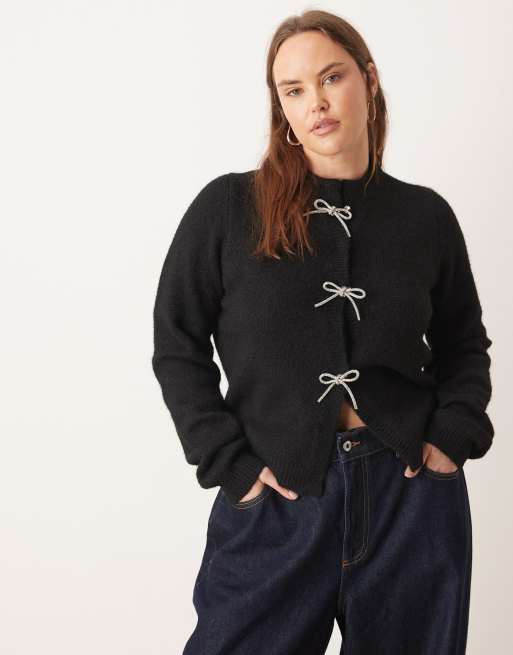 ASOS DESIGN Curve diamante bow front cardigan in black