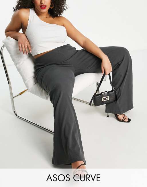 ASOS DESIGN Curve Edit holding power rib flare pants in dark grey