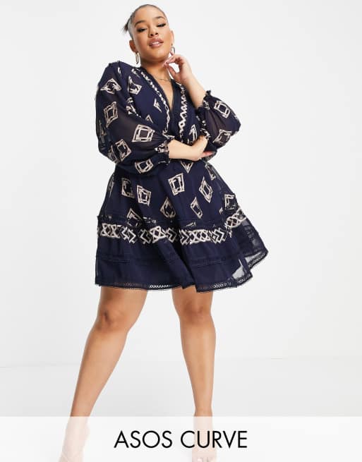 ASOS DESIGN Curve embroidered mini dress with blouson sleeve