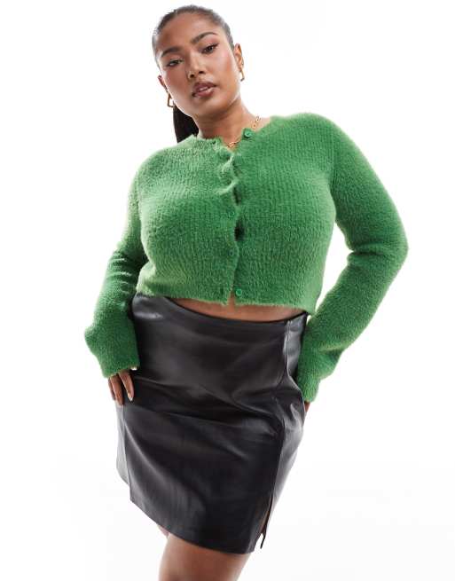 ASOS DESIGN Curve fitted cardigan in fluffy yarn in green