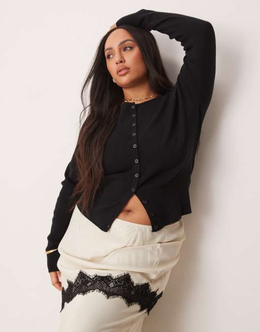 ASOS DESIGN Curve fitted ribbed cardigan in black