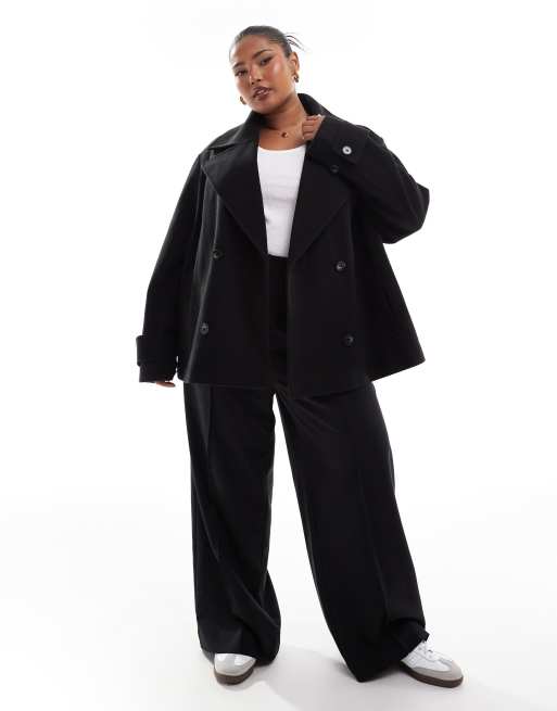 ASOS DESIGN Curve formal faux wool pea coat in black