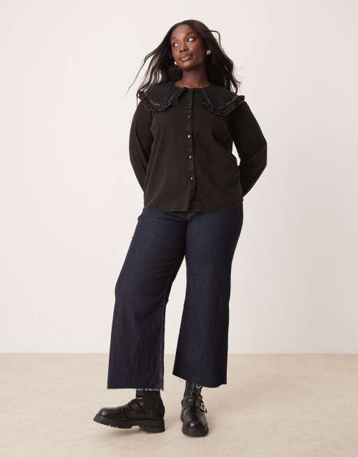 ASOS DESIGN Curve frill collar shirt in washed twill