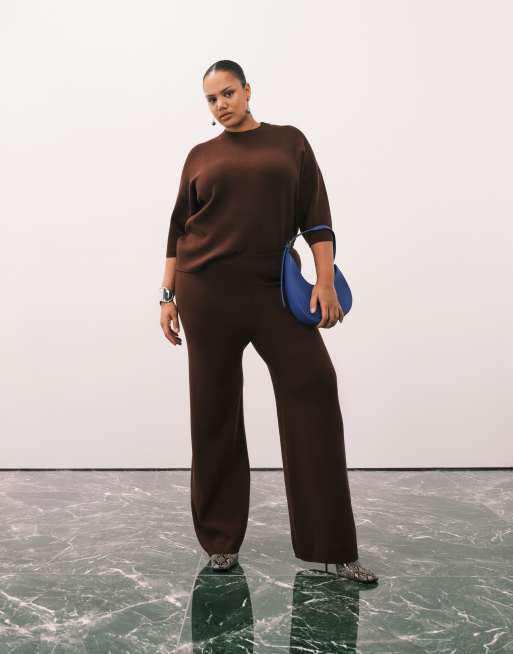 ASOS DESIGN Curve knitted compact pants in chocolate (Part of a set)