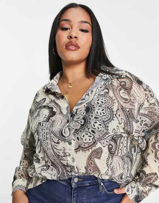 ASOS DESIGN Curve long sleeve shirt in paisley print