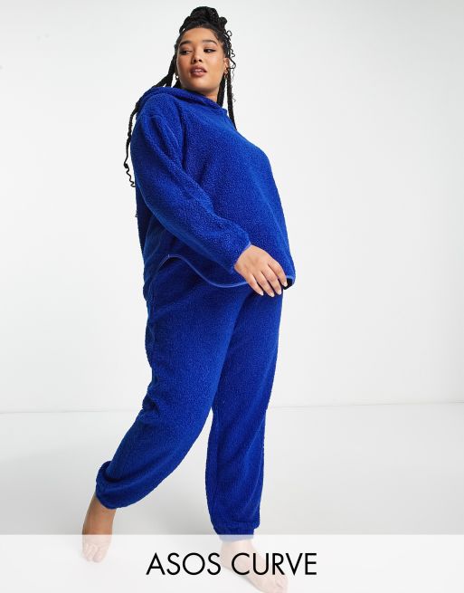 ASOS DESIGN Curve lounge borg hoodie & trackies set in navy