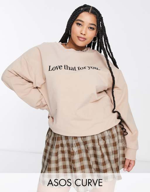 ASOS DESIGN Curve love that for you sweat in natural