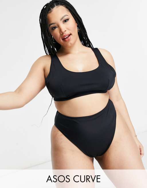 ASOS DESIGN Curve mix and match high leg high waist bikini bottoms in black