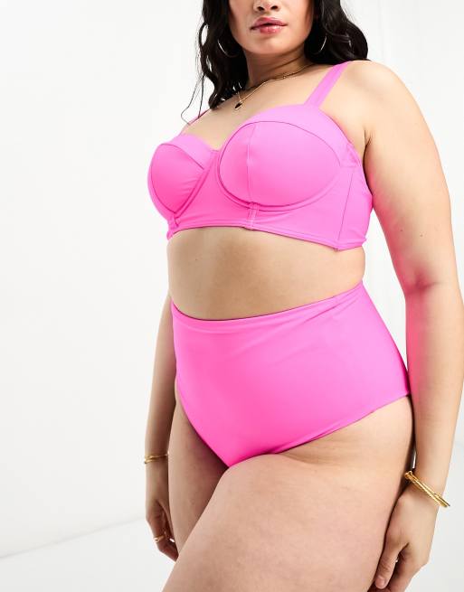 ASOS DESIGN Curve mix and match high waist bikini bottoms in bright pink
