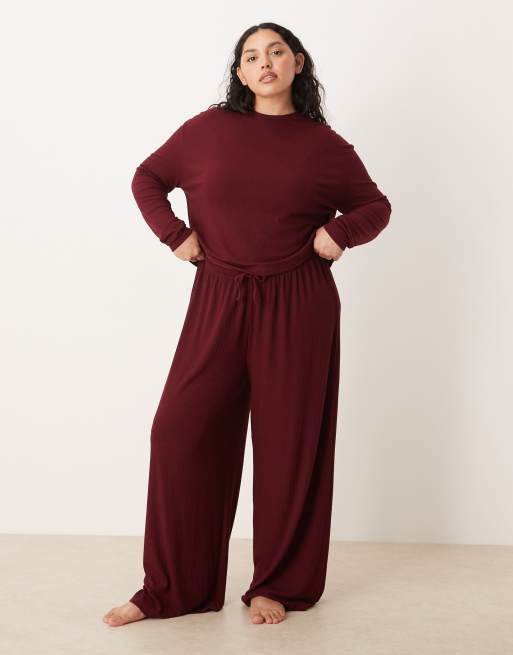 ASOS DESIGN Curve Mix & Match rib loungewear in burgundy