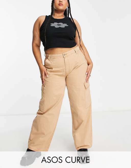 ASOS DESIGN Curve oversized cargo pants in stone