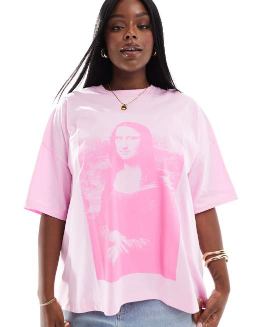 ASOS DESIGN Curve oversized t-shirt with Mona Lisa licence graphic in pink