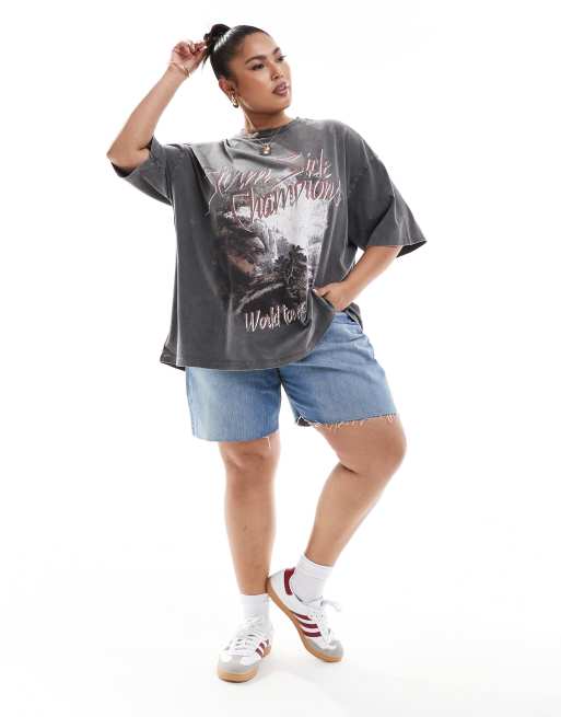 ASOS DESIGN Curve oversized t-shirt with rock graphic in washed charcoal