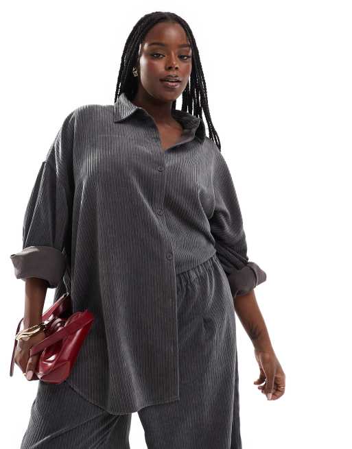 ASOS DESIGN Curve oversized variegated cord shirt in grey (part of a set)