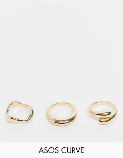 ASOS DESIGN Curve pack of 3 rings in mixed design in gold tone