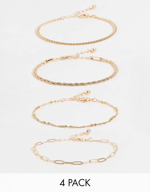 ASOS DESIGN Curve pack of 4 fine chain bracelets in gold tone