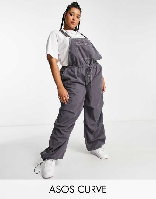 ASOS DESIGN Curve parachute pants dungarees in charcoal