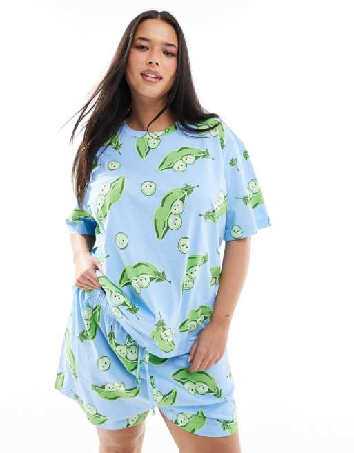 ASOS DESIGN Curve peas in a pod oversized tee & shorts pyjama set in blue