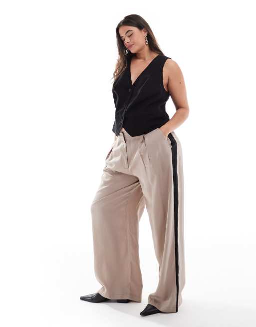 ASOS DESIGN Curve pleat detail contrast panel pants in mocha
