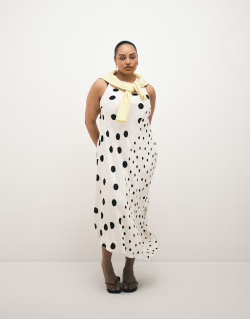ASOS DESIGN Curve racer midi dress with asymmetric hem in mixed black spot