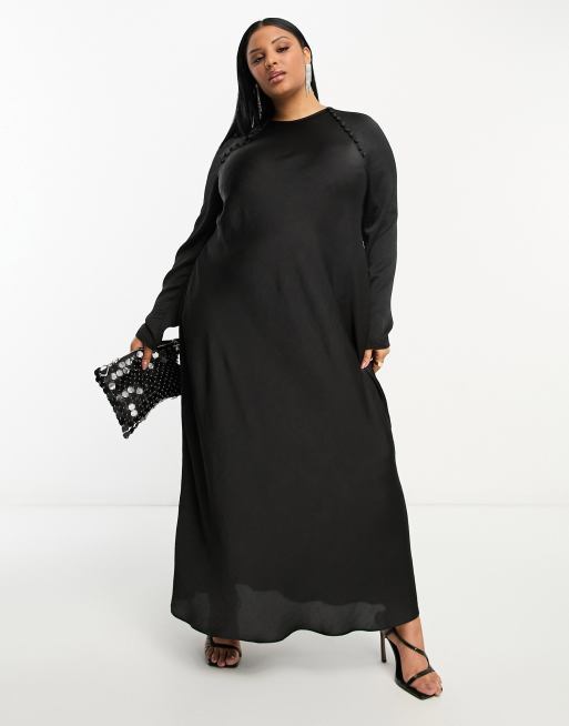 ASOS DESIGN Curve satin bias maxi dress with button detail in black