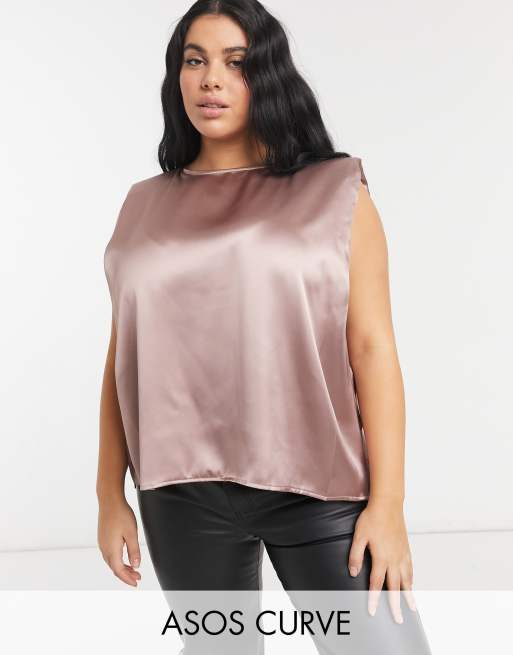ASOS DESIGN Curve satin shoulder pad tee in mink