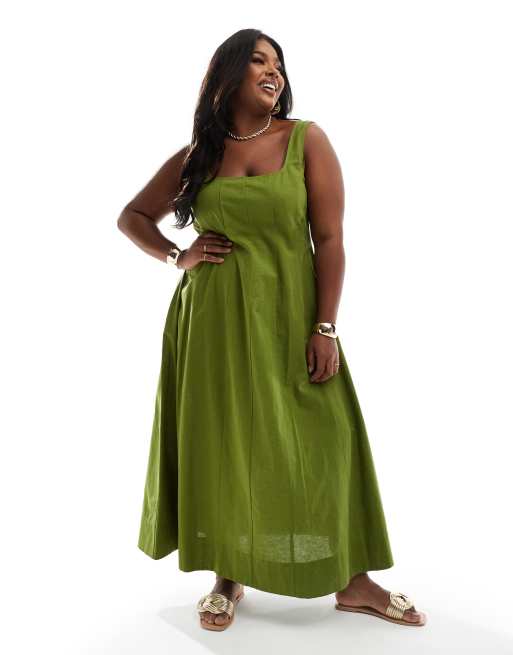 ASOS DESIGN Curve seamed maxi tennis sundress in khaki