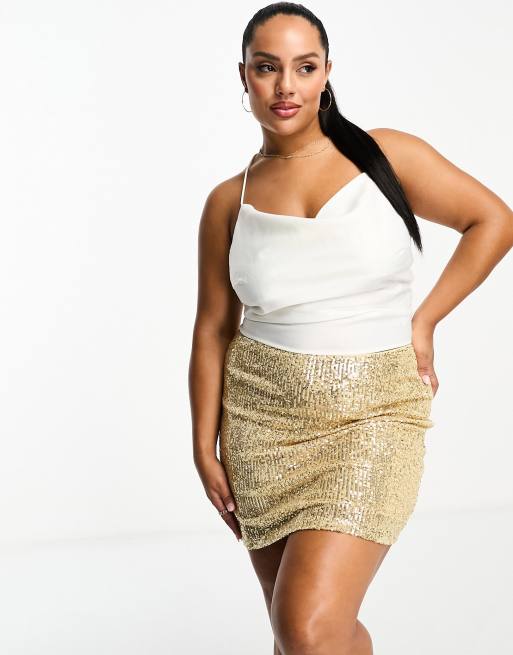 ASOS DESIGN Curve sequin mini skirt in gold
