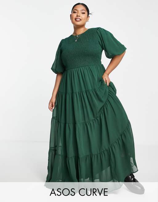 ASOS DESIGN Curve shirred tiered maxi dress in forest green