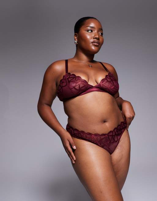 ASOS DESIGN Curve Simone premium fine embroidery lingerie with satin binding in burgundy jewel