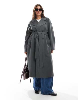 ASOS DESIGN Curve soft tailored trench in charcoal