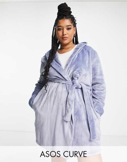 ASOS DESIGN Curve super soft fleece mini robe in blue