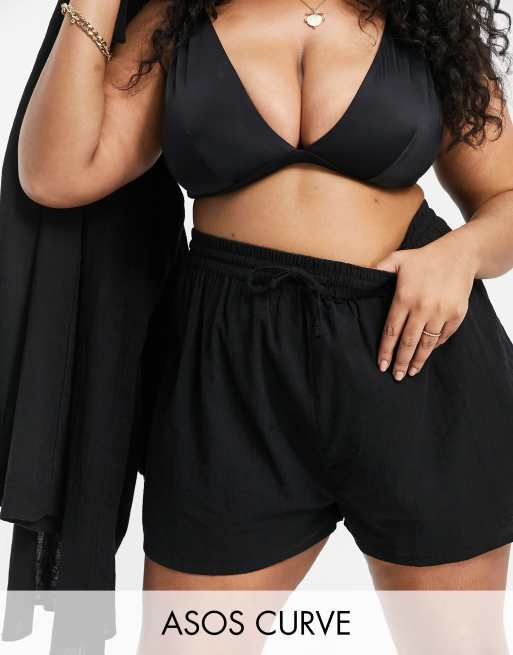 ASOS DESIGN Curve textured beach shorts in black