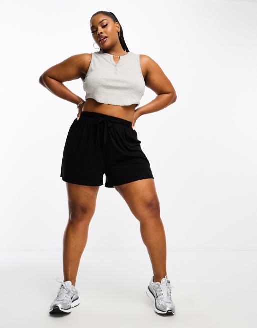 ASOS DESIGN Curve tie belt flippy shorts in black