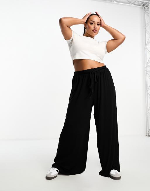 ASOS DESIGN Curve tie belt wide leg pants in black
