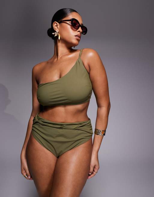ASOS DESIGN Curve Tina Twisted paper touch bikini set in khaki