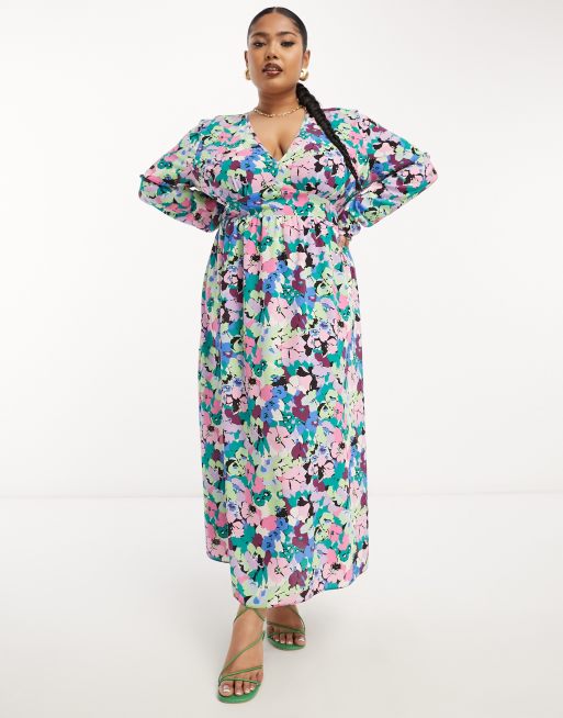 ASOS DESIGN Curve waisted maxi dress in blue floral print