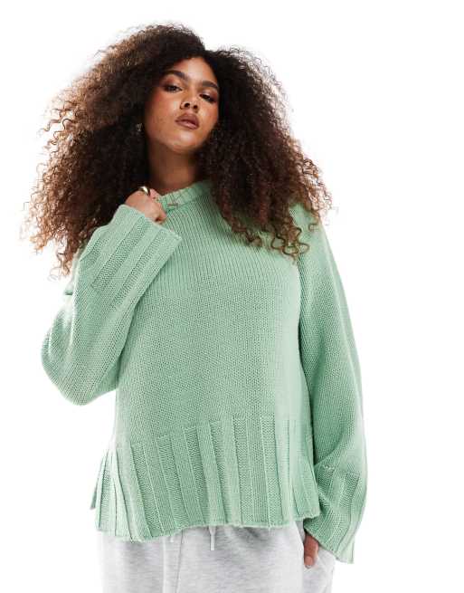 ASOS DESIGN Curve wide rib boxy jumper in sage