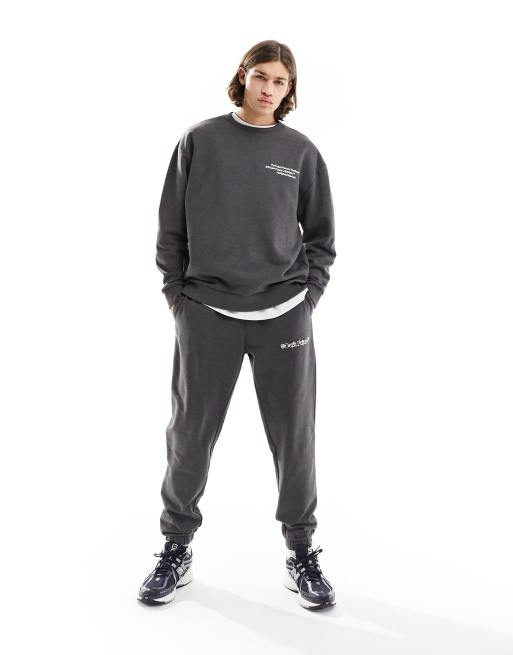 ASOS Dark Future tapered trackies in charcoal grey with print