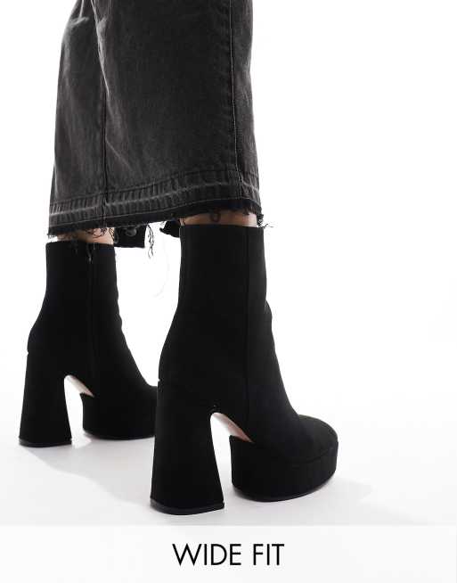 ASOS DESIGN Wide Fit Enchant heeled platform boots in black micro
